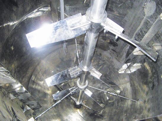 脫色罐:主要攪拌目的是物料輕輕攪動脫色,低轉速大直徑的轉動,不能使物料大范圍的攪拌以破壞脫色效果。使用的槳葉形式有:斜葉槳式(XJ、HJ、QJ等)。
